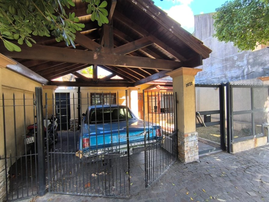 - Garaje semi cubierto, con importante techo de madera y tejas