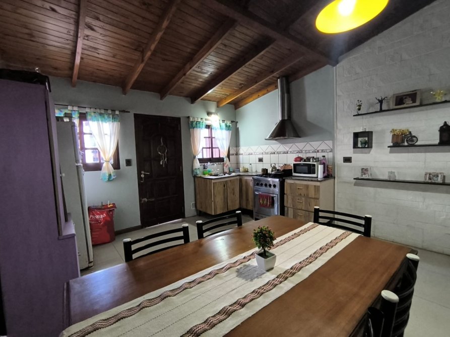 - Cocina comedor diario, con ventanas y puerta que dan al patio, muebles bajo mesada, barra pasa platos y arcada que conecta con el living dando la sensación de espacios integrados